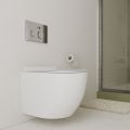 W zestawie Hagser Beno znajduje się twarda deska Slim z systemem wolnoopadającym, dzięki czemu pokrywa zamyka się cicho i delikatnie. Funkcja szybkiego wypinania znacznie ułatwia utrzymanie czystości – wystarczy jeden ruch, aby zdjąć deskę i dotrzeć do trudno dostępnych miejsc. Niewidoczny system montażu podkreśla minimalistyczną estetykę miski, zapewniając efekt czystości i uporządkowania.